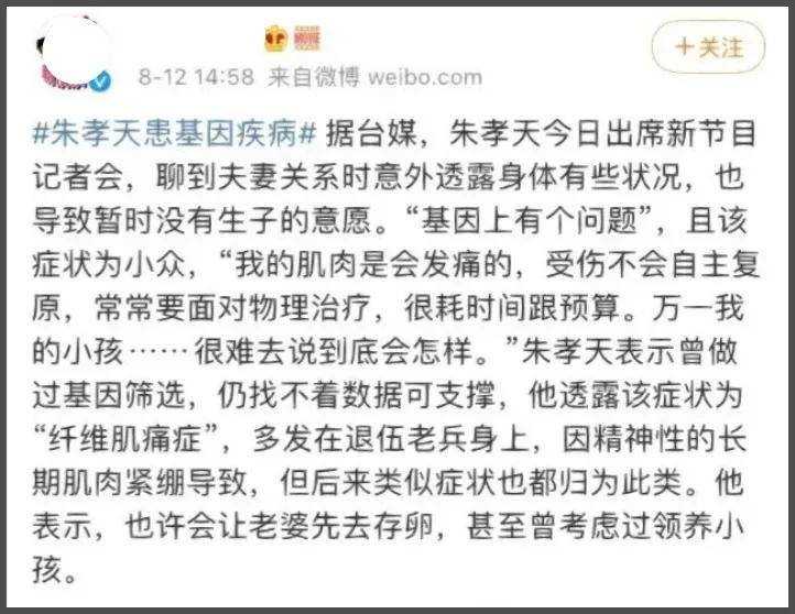 谈到自己46岁还没要孩子的问题,朱孝天直言到了自己这个年纪如果要孩子,可能还没和孩子熟悉几年,自己就要走了,朱孝天还担心自己的病会影响生孩子。